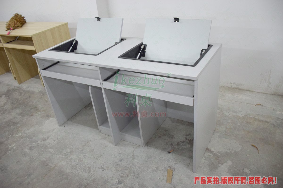 科桌翻轉電腦桌主要應用于各種大型會議室,學術報告廳,計算機教室,多媒體教室、多媒體會議室、多媒體電子教室、多媒體電教室、機房、培訓中心,展廳內及多功能會議廳等。普通教室與計算機教室模式相互切換快速,不阻礙老師與學生之間目光交流。