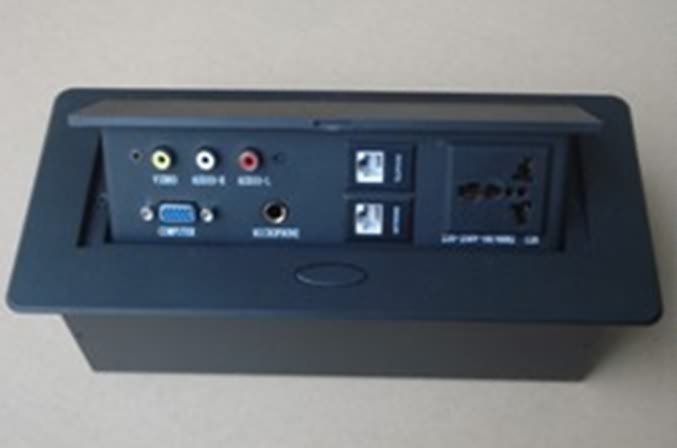 翻蓋多功能桌面插座是目前市場上較為新款、實用的、美觀的多功能桌面線盒,此款多功能桌面線盒適用于辦公會議桌、班臺、洽談桌面、個人辦公桌等。作為會議辦公桌面線盒,本系列的多功能桌面插座面板采用高質量鋁合金材質,面板表面采用陽極化精密度鋁拉絲處理,手感光滑細膩,外觀精美高檔,可以很容易的安裝嵌入到任何會議桌面任何位置不影響桌面整體效果。
