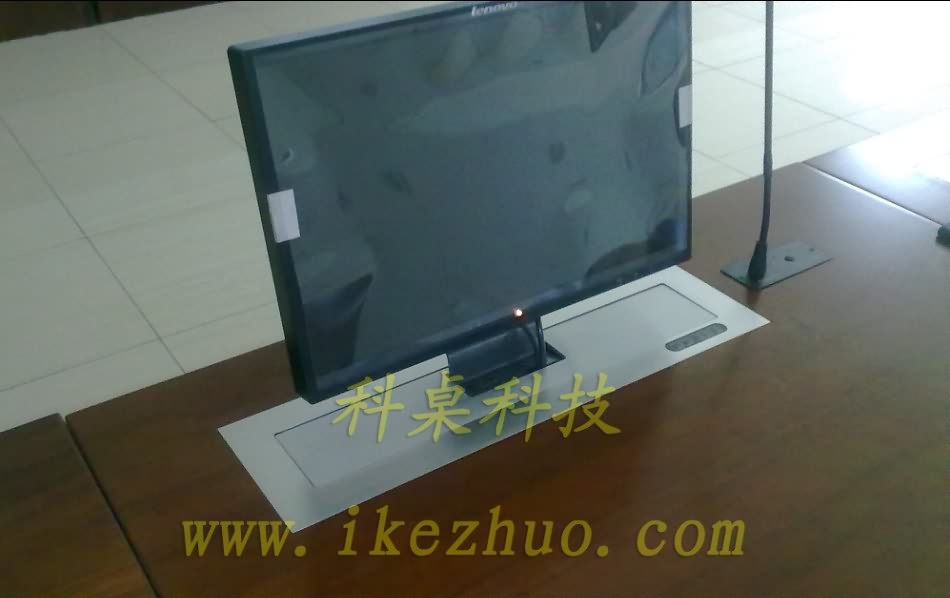 液晶屏升降器介紹:當使用顯示屏時,隱藏在會議桌內部的升降機把顯示屏從會議桌下面升到桌子表面;當不使用顯示屏時,手按或遙控升降機進行下降,顯示屏就會再次隱藏在會議桌內部,防盜、防塵,保持桌表面的整潔和美觀。
